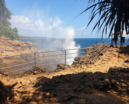 Hummanaya Blowhole is the only known blowhole in Sri Lanka and it is considered to be the second largest blowhole in the world. Its a natural blowhole and is caused when sea water rushes through a submerged cavern and is pushed upwards. The water fountain created by the geological feature shoots up every couple of minutes with the spray often reaching as high as 25 – 30 m.
